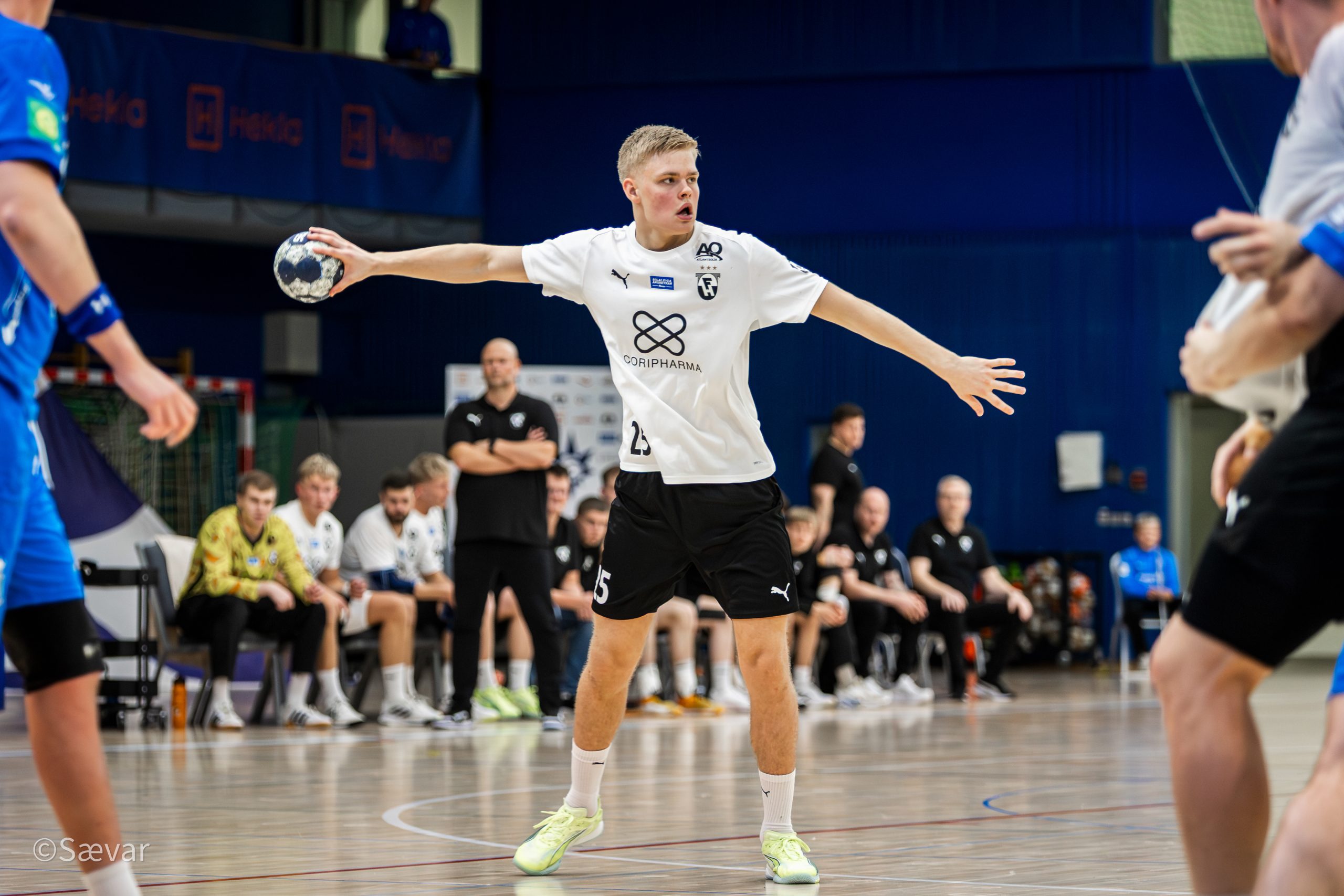 HK-ingar stálu senunni þegar þeir unnu FH 33-34 á dramatískan hátt í Kaplakrika í kvöld. Leikurinn var jafn og spennandi allan tímann og þegar um 15 sekúndur voru eftir var allt jafnt 33-33 og Halldór Jóhann tók leikhlé. Ágúst Guðmundsson skoraði svo lokamarkið með frábæru skoti og FH-ingur höfðu ekki tíma til þess að svara. Lokatölur 33-34 fyrir HK-ingum eftir að staðan hafði verið 19-17 FH í vil í hálfleik. Birkir Benediktsson og Jón Bjarni Ólafsson voru markahæstir í liði FH með 7 mörk hvor og Haukur Ingi Hauksson markahæstur HK-inga með 9 mörk. HK eru því komnir á blað og sóttu þeirra fyrstu stig á tímabilinu.