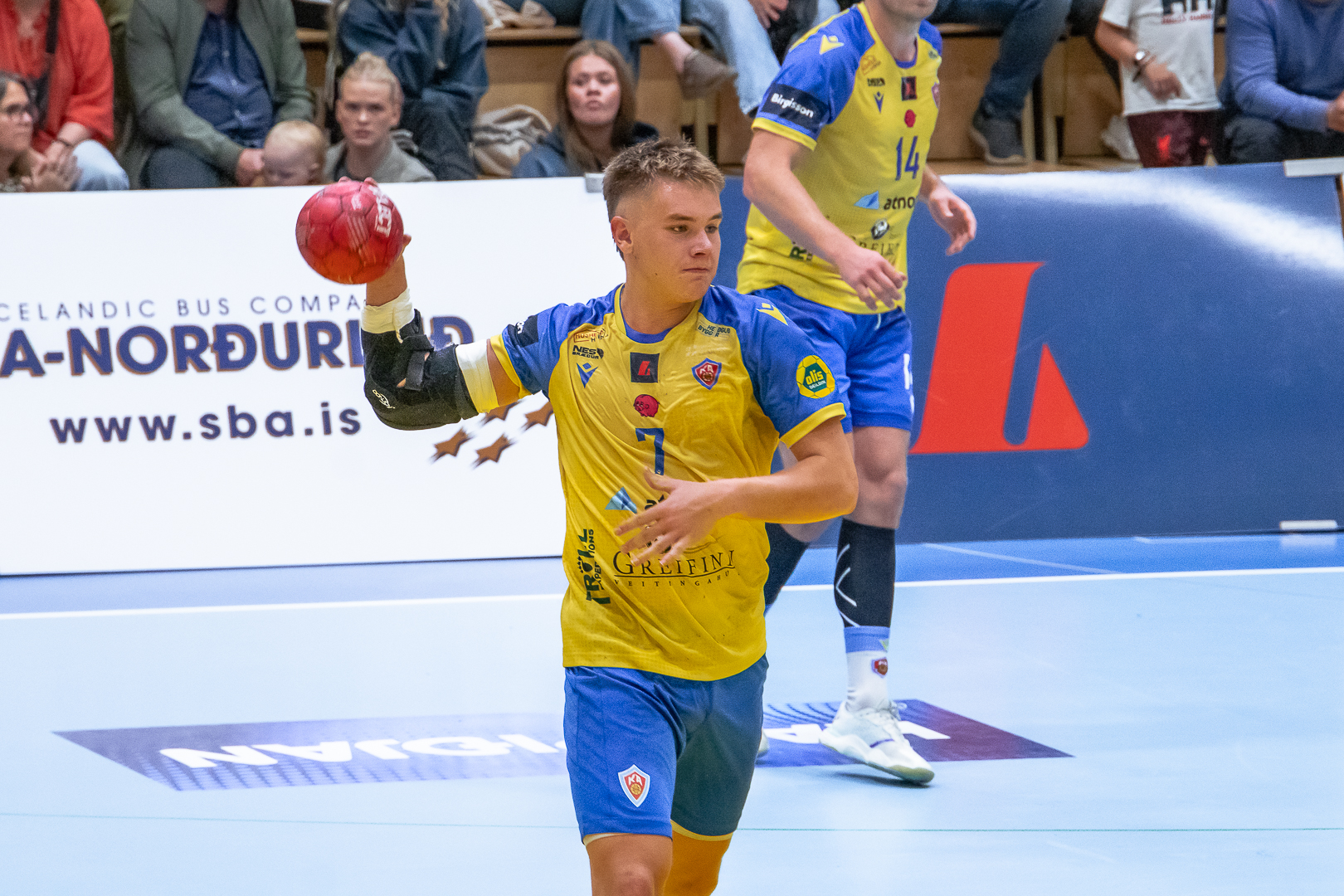 KA menn voru til umræðu í nýjasta þætti Handkastins eftir sigur þeirra á HK í Kórnum á föstudaginn. Guðjón Guðmundsson eða Gaupi eins og hann er alltaf kallaður sá þá spila gegn Aftureldingu í þar síðustu umferð og fannst þeir ekki sannfærandi en í sigri liðsins gegn HK í síðustu viku var það sérstaklega einn leikmaður sem gerði það að verkum að KA fór með sigur af hólmi að mati Gaupi og hann heitir Magnús Dagur Jónatansson. ,,Hann var frábær í þessum leik, skilaði sínu nánast óaðfinnanlega. Þetta er strákur sem hefur verið í miklum meiðslum, gríðarlegt efni. Hann hefur verið svolítið í skugganum á Degi Árna Heimissyni og fleirum á síðustu árum en þarna sýndi hann hvers hann er megnugur með 6 mörk úr 6 skotum." Þetta verða að teljast gífurlega góðar fréttir fyrir KA ef Magnús Dagur ætlar að finna sitt fyrr form því hann hefur verið að glíma við gífurlega erfið meiðsli í olnboga sem hafa haldið honum handbolta og urðu til þess að hann datt úr unglingalandsliðinu. 5.umferðin í efstu deild karla: Í kvöld: