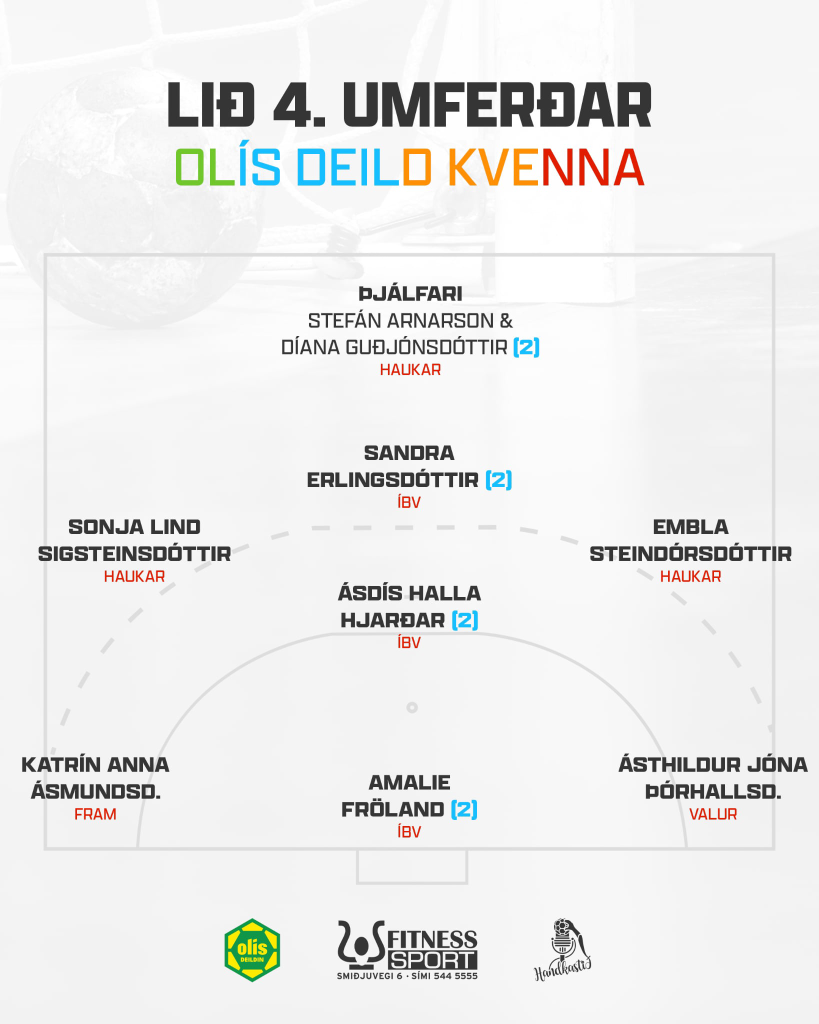 4.umferðin í Olís-deild kvenna er að baki og hefur Handkastið valið lið umferðarinnar sem er í boði Cell-Tech. Cell-tech kreatínið er fáanlegt í Fitness Sport. Hér að neðan er hægt að sjá úrvalslið 4.umferðar Olís-deildar kvenna. Leikmaður 4. umferðarinnar í boði Sage by Saga Sif er Sandra Erlingsdóttir leikmaður ÍBV. Hún fær að launum gjafabréf hjá Sage By Saga Sif. Þjálfarar 4.umferðarinnar eru Stefán Arnarson og Díana Guðjónsdóttir þjálfarar Hauka. Markmaður: Amalie Fröland (ÍBV) (2) Þjálfarar: Stefán Arnarson og Díana Guðjónsdóttir (Haukar) (2) Úrslit 4.umferðar: Sage By Saga Sif styður kvennaumfjöllun Handkastsins - Kóðinn: handkastid veitir 15% afslátt í vefverslun Sage By Saga Sif.