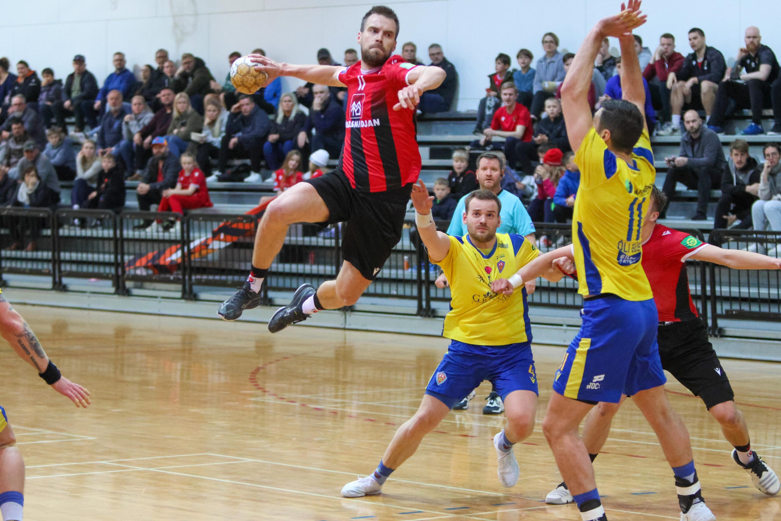 Í hálfleik var staðan 19-13 og lokatölur urðu 34-26.