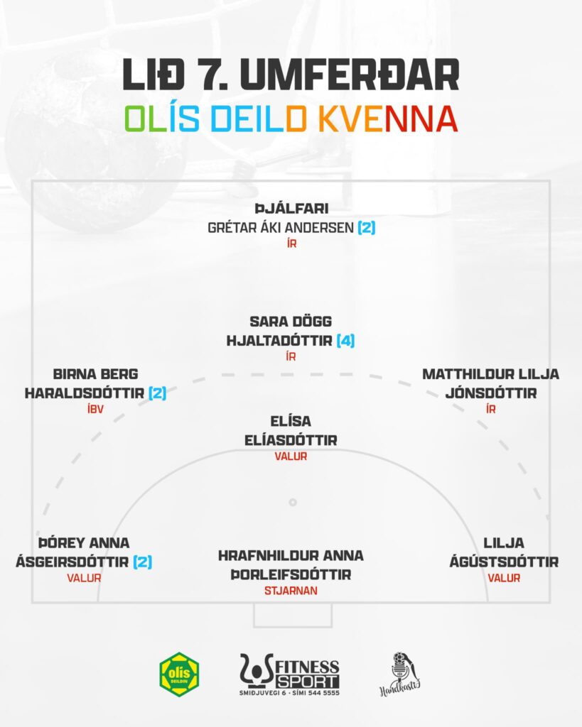 7.umferðin í Olís-deild kvenna er að baki og hefur Handkastið valið lið umferðarinnar sem er í boði Cell-Tech. Cell-tech kreatínið er fáanlegt í Fitness Sport. Hér að neðan er hægt að sjá úrvalslið 7.umferðar Olís-deildar kvenna. Leikmaður 7. umferðarinnar í boði Sage by Saga Sif er Hrafnhildur Anna Þorleifsdóttir markvörður Stjörnunnar en hún átti stórleik gegn KA/Þór og var með 43% markvörslu. Hún fær að launum gjafabréf hjá Sage By Saga Sif. Þjálfari 7.umferðarinnar er Grétar Áki Andersen þjálfari ÍR. Markmaður: Hrafnhildur Anna Þorleifsdóttir (Stjarnan) Þjálfari: Grétar Áki Andersen (2) (ÍR) Úrslit 6.umferðar: