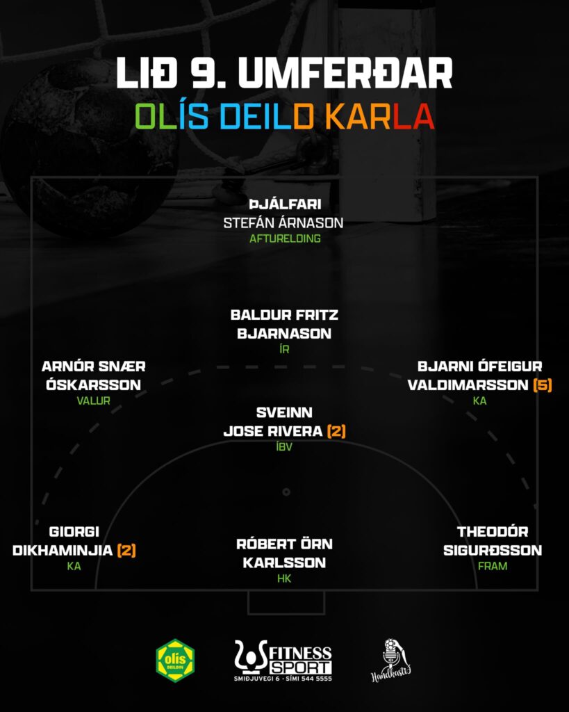 9.umferðin í Olís-deild karla er að baki og hefur Handkastið valið lið umferðarinnar sem er í boði Cell-Tech. Cell-tech kreatínið er fáanlegt í Fitness Sport. Hér að neðan er hægt að sjá úrvalslið 9.umferðar Olís-deildar karla. Leikmaður 9.umferðarinnar er Arnór Snær Óskarsson leikmaður Vals. Þjálfari 9.umferðarinnar er Stefán Árnason þjálfari Aftureldingar. Mark: Róbert Örn Karlsson (HK) Þjálfari: Stefán Árnason (Afturelding) Úrslit 9.umferðar: