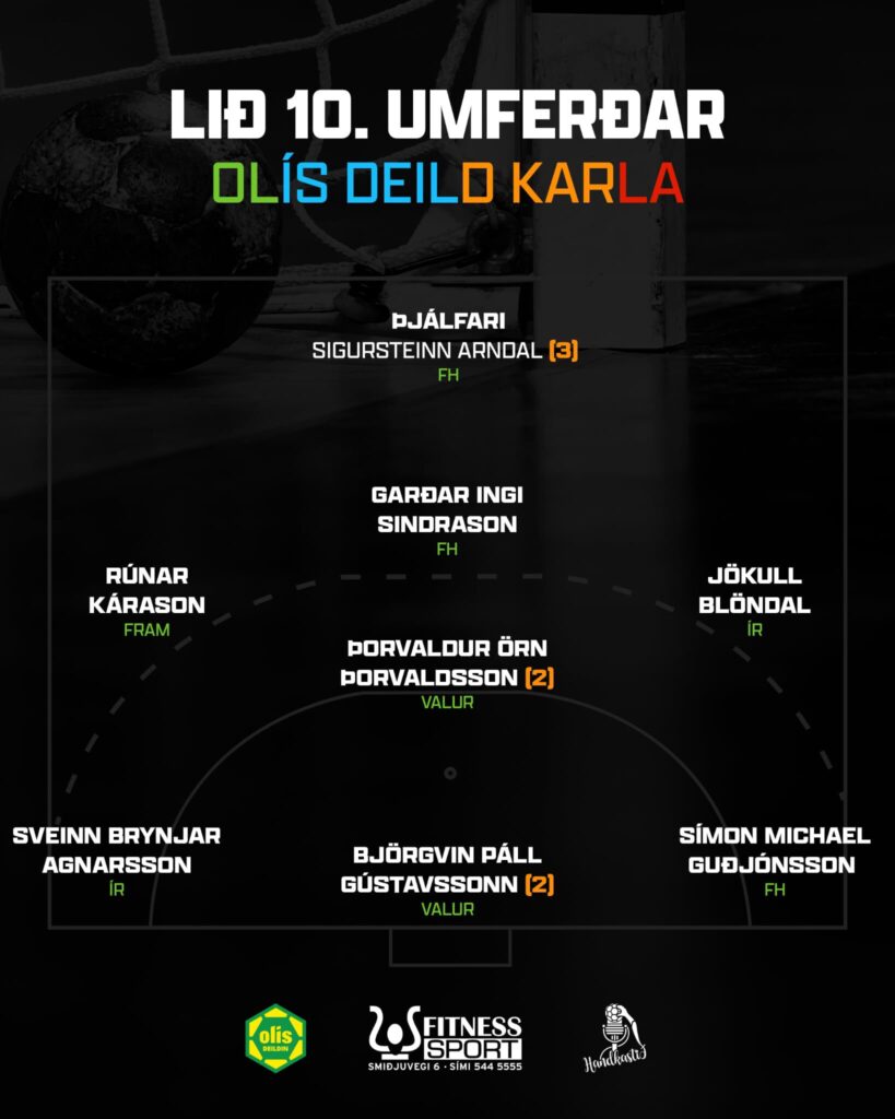 10.umferðin í Olís-deild karla er að baki og hefur Handkastið valið lið umferðarinnar sem er í boði Cell-Tech. Cell-tech kreatínið er fáanlegt í Fitness Sport. Hér að neðan er hægt að sjá úrvalslið 10.umferðar Olís-deildar karla. Leikmaður 10.umferðarinnar er Garðar Ingi Sindrason leikmaður FH. Þjálfari 10.umferðarinnar er Sigursteinn Arndal þjálfari FH. Cell-tech lið 10.umferðar í Olís-deild karla: Mark: Björgvin Páll Gústavsson (2) (Valur) Þjálfari: Sigursteinn Arndal (3) (FH)