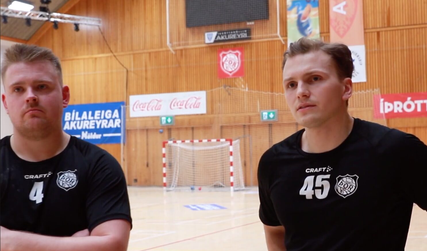 Þórður Tandri Ágústsson og Hafþór Vignisson leikmenn Þórs eru spenntir fyrir nágrannaslagnum í Olís-deild karla á fimmtudagskvöldið þegar KA og Þór mætast í 11.umferð deildarinnar í KA-heimilinu. Leikurinn hefst klukkan 19:30 og verður sýndur í opinni dagskrá í Sjónvarpi Símans. Egill Bjarni Friðjónsson ljósmyndari og handbolta áhugamaður kíkti á æfingu hjá félögunum í vikunni og hitti meðal annars Þórð Tandra og Hafþór Vignisson leikmenn Þórs en báðir komu þeir heim til Þórs fyrir síðustu leiktíð og léku með liðinu í Grill66-deildinni. Nú er hinsvegar komið að fyrsta nágrannaslag félaganna frá því í maí árið 2021 þegar heimsfaraldur geisaði. Þórsarar hafa selt alla sína 300 miða á leikinn og það má búast við svakalegri stemningu í troðfullu KA-heimili á fimmtudaginn. Viðtalið sem Egill Bjarni tók við Þórð Tandra og Hafþór má sjá hér að neðan.