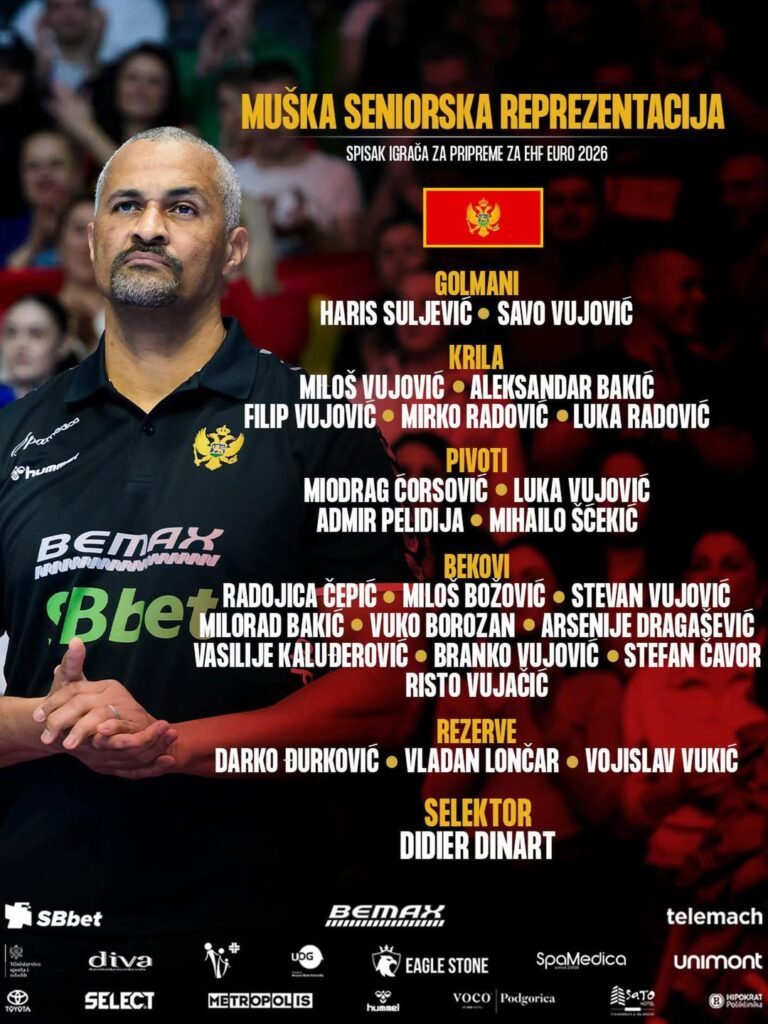 Didier Dinart sem er í veikindaleyfi sem þjálfari franska B-deildarliðsins Ivry er í engu veikindaleyfi sem þjálfari Svartfellinga. Hann hefur valið lokahóp sinn fyrir Evrópumótið sem framundan er. Þar verða Svartfellingar án markvarðar síns, Nebojsa Simic leikmanns Melsungen sem sleit krossband fyrr á árinu og er enn í endurhæfingu eftir meiðslin. Svartfellingar eru í D-riðli Evrópumótsins með Slóveníu, Sviss og Færeyjum í riðli en komist Svartfellingar og Íslands áfram upp úr sínum riðlum mætast liðin í milliriðli keppninnar í Malmö. EM hóp Didier Dinart má sjá hér að neðan: