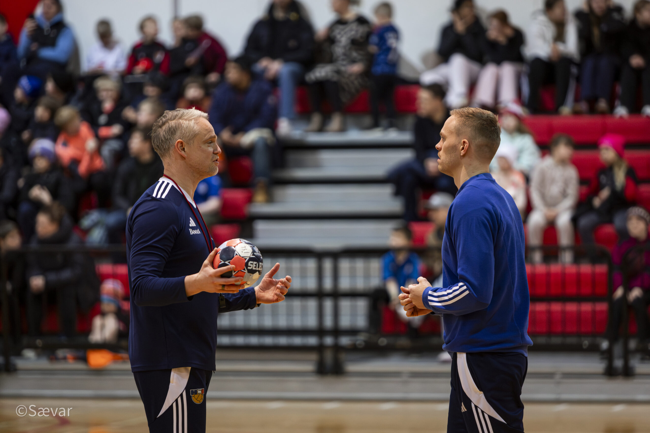 Það er ljóst að eins og staðan er í dag verður íslenska landsliðið án Kristjáns Arnar Kristjánssonar, Donna og Þorsteins Leós Gunnarssonar í riðlakeppni Evrópumótsins. Donni dró sig úr landsliðshópnum um helgina vegna meiðsla og þá er Þorsteinn Leó enn að glíma við meiðsli en vonir standa til að hann gæti mögulega komið inn í landsliðið í milliriðlum keppninnar. Snorri Steinn Guðjónsson hefur ekki kallað inn nýjan leikmann í hópinn eftir að Donni datt út og er því eins og staðan er núna með 17 leikhæfa leikmenn í hópnum. Mun hann kalla inn 18. manninn fyrir EM? ,,Já og nei. Ég velti þessu mikið fyrir mér. Auðvitað vill ég fara á stórmót með 18 heila leikmenn. Það er alveg ljóst að Þorsteinn Leó verður ekki með okkur í riðlakeppninni. Ef ég tek hann með frá fyrsta degi , þá er ljóst að ég er að taka með mér meiddan leikmann. Það er engin óskastað en ég vil samt hafa hann með ef þróast í þá átt að hann gæti beitt sér á mótinu. Þá er mikilvægt að hann sé búinn að vera með okkur allan tímann,” sagði Snorri Steinn í viðtali við Handkastið og segist ennþá vera að melta þetta. ,,Við tökum stöðuna eftir hverja einustu æfingu og hvern einasta dag og förum yfir þetta. Það er ekkert útilokað að ég taki inn nýjan leikmann en það getur líka farið svo að við förum með þennan hóp til Frakklands.” Íslenska landsliðið ferðaðast til Frakklands aðfararnótt fimmtudags og leikur tvo æfingaleiki í París um helgina. Þann fyrri á föstudaginn við Slóveníu.