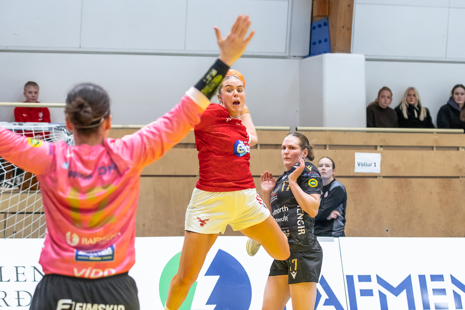 14.umferðin í Olís-deild kvenna heldur áfram í dag með einum leik þegar topplið Olís-deildar kvenna, ÍBV og Valur mætast í Vestmannaeyjum. Liðin eru jöfn að stigum með 22 stig á toppi deildarinnar fyrir leikinn í dag. Valur vann sannfærandi 15 marka sigur á KA/Þór á heimavelli í síðustu umferð. Í Handboltahöllinni sem sýnd er öll mánudagskvöld í opinni danskrá í Sjónvarpi Símans var farið yfir frammistöðu tveggja leikmanna í Valsliðinu í sigrinum gegn KA/Þór. Fyrst ber að nefna frammistöðu Hafdísar Renötudóttur markmanns Vals sem var með yfir 50% markvörslu í markinu og þá var farið yfir frammistöðu landsliðshornamannsins, Þóreyjar Önnu Ásgeirsdóttur sem var frábær í leiknum og skoraði mörk úr öllum regnboganslitum í leiknum. ,,Þórey hefur verið lengi í deildinni og er bæði að spila í horninu og í skyttunni. Hendin á henni hefur alltaf verið langt yfir meðallagi hjá kvenmannsleikmanni. Hún hefur frábæra skothönd. Þetta er hrikalega vel gert. Það sem hún hefur verið að bæta ár frá ári er að hún er orðin betri varnarmaður og hún er miklu betri að skila sér í vörnina," sagði Einar Ingi Hrafnsson meðal annars um Þóreyju Önnu og bætti við að þrátt fyrir að vera búin að vera lengi í deildinni og búin að vinna nánast allt sem hægt er að vinna, er hún enn að bæta sinn leik. Umræðuna um Þóreyju Önnu og Hafdísi má sjá hér að neðan.