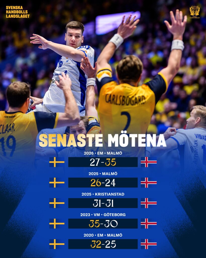 Karla landslið Íslands og Svíþjóðar mætast í tveimur vináttulandsleikjum hér á landi. Sá fyrri fer fram í kvöld klukkan 19:30 í N1-höllinni að Hlíðarenda en sá seinni fer fram í Kaplakrika í Hafnarfirði á laugardaginn klukkan 17:00. Leikurinn í kvöld verður 78. landsleikur þjóðanna ef marka má upplýsingar sem sænska handknattleikssambandið birti á samfélagsmiðlum sínum í dag. Þar segir að Svíar hafa unnið 58 af 77 leikjum og Ísland einungis 14. Ísland vann þó síðustu viðureign þjóðanna sem fór fram í Malmö í janúar í milliriðli Evrópumótsins. Athygli vekur að Ísland hefur náð betri árangri en Svíþjóð á síðustu tveimur stórmótum.