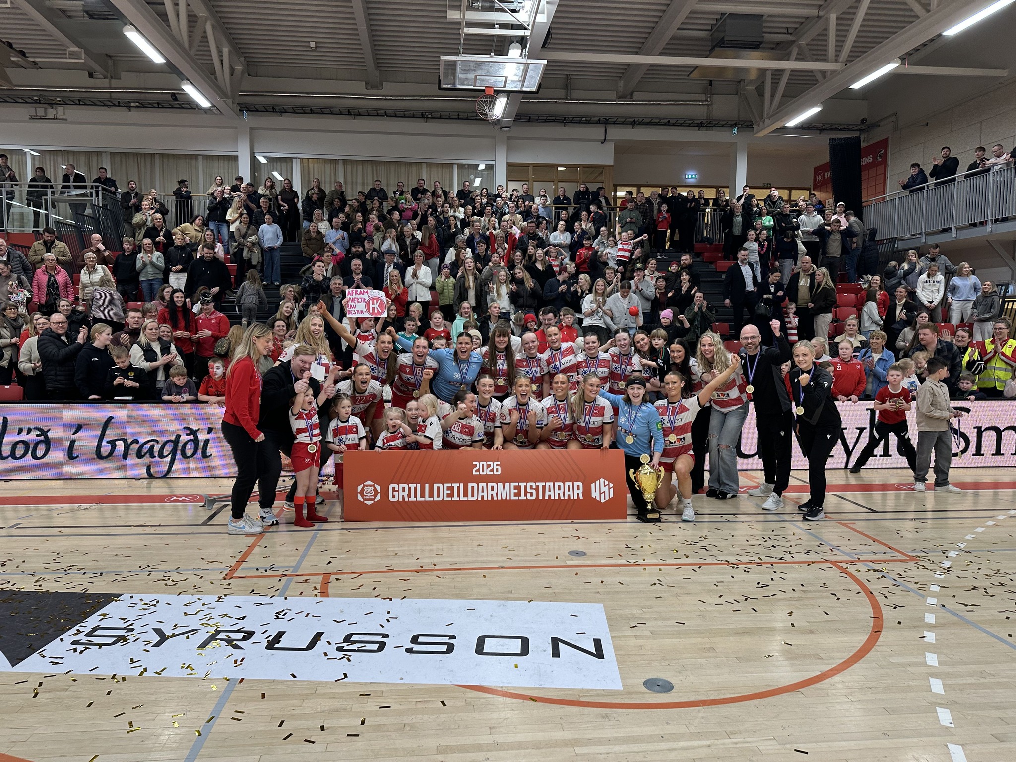 Eftir fjögur ár í Grill66-deildinni tryggði HK sér sæti í Olís-deild kvenna í gærkvöldi eftir sigur á Fjölni í lokaumferð deildarinnar. Það leit ekki vel út fyrir HK fyrir rúmlega viku síðan þegar Grótta var á toppi deildarinnar þegar þrjár umferðir voru eftir en óvænt tap Gróttu gegn FH í þriðju síðustu umferðinni gerði það að verkum að HK endurheimti efsta sætið og vann Grill66-deildina með tveimur sigrum í loka umferðunum. HK hefur hægt og bítandi byggt liðið sitt upp eftir að hafa fallið úr deildinni tímabilið 2021/2022. Í því liði voru leikmenn á borð við landsliðsstelpurnar, Alexöndru Líf Arnarsdóttir, Ölfu Brá Oddsdóttir Hagalín, Berglind Þorsteinsdóttir, Jóhönnu Margréti Sigurðardóttir auk leikmanna eins og Embla Steindórsdóttir, Sara Katrín Gunnarsdóttir, Valgerður Ýr Þorsteinsdóttir og lengi mætti telja. Aðalsteinn Eyjólfsson þjálfari karlaliðs Víking var gestur í nýjasta þætti Handkastsins þar sem hann var spurður út í það hvernig honum líst á að fá að sjá HK á nýjan leik í Olís-deild kvenna. ,,Mér líst mjög vel á það. HK er með gríðarlega öflugt starf og hefur lengi verið með góða yngri flokka og framleitt marga góða leikmenn. Það er frábært að sjá HK aftur í Olís-deildinni á næsta tímabili og að sama skapi hryggir það mann, að það á auðvitað eftir að spila þetta umspil en ég vona svo sannarlega að það verði fjölgun í Olís-deild kvenna og við fjölgum í deild þeirra bestu á Íslandi fyrir næstu leiktíð.” En í kjölfarið fór umræða af stað um þá umræðu sem uppi er um að fjölga eigi í Olís-deild kvenna fyrir næstu leiktíð og fara í 10 liða deild en það virðist vera einhugur í handboltahreyfingunni að það sé rétt skref fyrir kvenna handboltann á Íslandi. HK endaði með 38 stig í Grill66-deild kvenna tveimur stigum á undan Gróttu. Næsta lið í deildinni var Víkingur með 20 stig, jafn mörg stig og FH. Öll þessi þrjú lið leika í umspili um laust sæti í Olís-deildinni á næstu leiktíð ásamt Stjörnunni.
